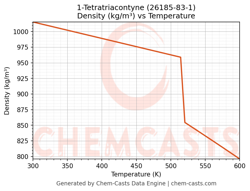 This page presents the temperature-dependent thermodynamic and transport properties of 1-Tetratriacontyne (CAS 26185-83-1) calculated at a constant pressure of 1 atm (101325 Pa) over the temperature range 250-500 K.
