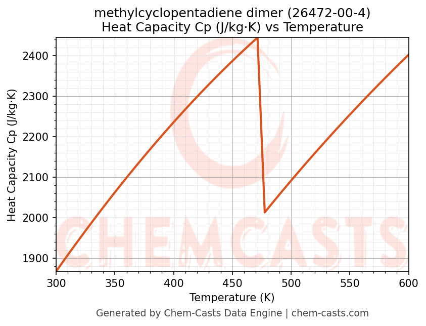 - Specific heat capacity (Cp) indicates the amount of energy required to raise the temperature of methylcyclopentadiene dimer and is critical for energy balance and heat-exchanger design.