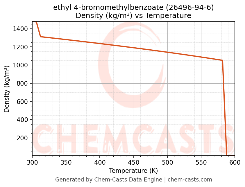 This page presents the temperature-dependent thermodynamic and transport properties of ethyl 4-bromomethylbenzoate (CAS 26496-94-6) calculated at a constant pressure of 1 atm (101325 Pa) over the temperature range 250-500 K.