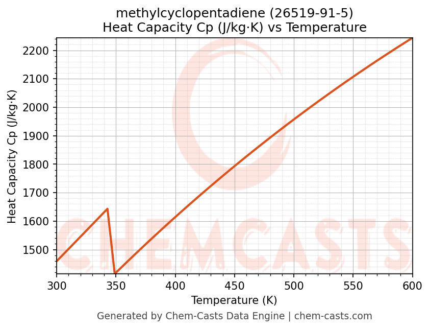 - Specific heat capacity (Cp) indicates the amount of energy required to raise the temperature of methylcyclopentadiene and is critical for energy balance and heat-exchanger design.