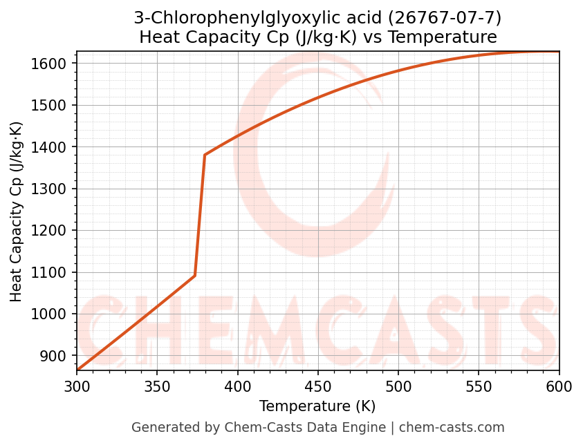 - Specific heat capacity (Cp) indicates the amount of energy required to raise the temperature of 3-Chlorophenylglyoxylic acid and is critical for energy balance and heat-exchanger design.