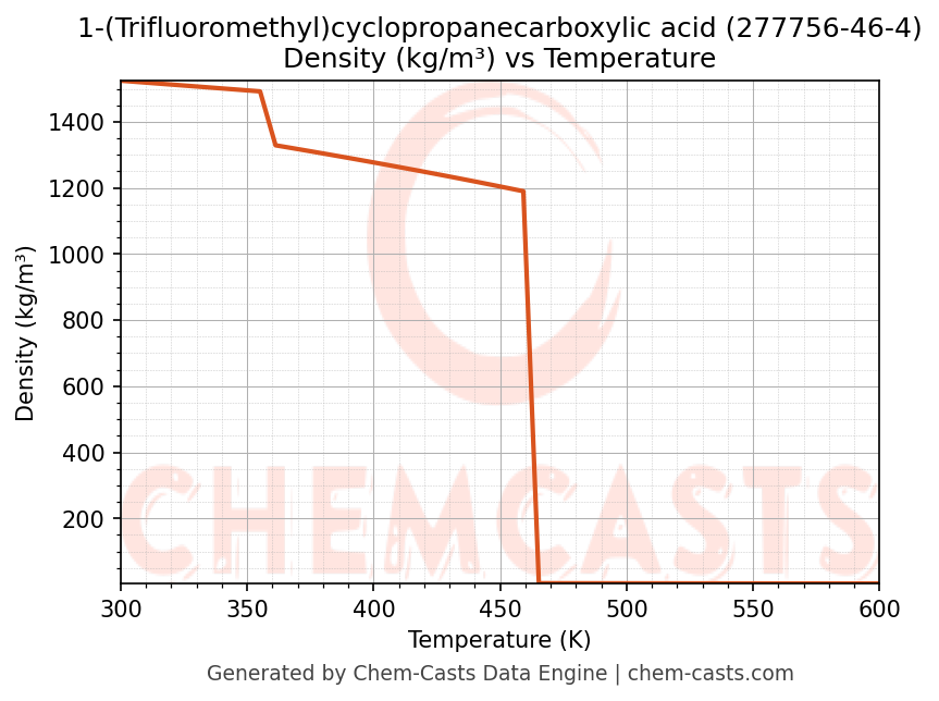 This page presents the temperature-dependent thermodynamic and transport properties of 1-(Trifluoromethyl)cyclopropanecarboxylic acid (CAS 277756-46-4) calculated at a constant pressure of 1 atm (101325 Pa) over the temperature range 250-500 K.