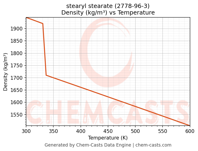 This page presents the temperature-dependent thermodynamic and transport properties of stearyl stearate (CAS 2778-96-3) calculated at a constant pressure of 1 atm (101325 Pa) over the temperature range 250-500 K.