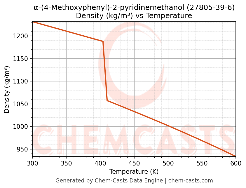 This page presents the temperature-dependent thermodynamic and transport properties of α-(4-Methoxyphenyl)-2-pyridinemethanol (CAS 27805-39-6) calculated at a constant pressure of 1 atm (101325 Pa) over the temperature range 250-500 K.