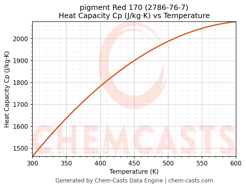 - Specific heat capacity (Cp) indicates the amount of energy required to raise the temperature of pigment Red 170 and is critical for energy balance and heat-exchanger design.