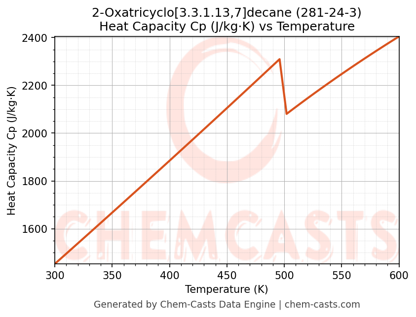 ![Heat Capacity (Cp) vs Temperature chart for 2-Oxatricyclo[3.3.1.13,7]decane (CAS 281-24-3)](https://chemcasts-prod.s3.ap-south-1.amazonaws.com/chem_plots_pconst/281-24-3-cp.png)