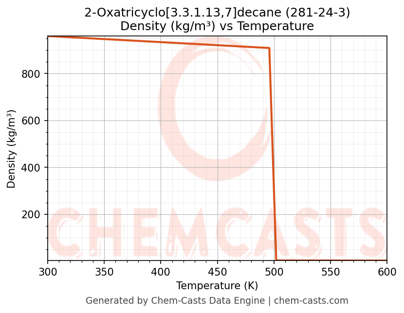 ![Density vs Temperature chart for 2-Oxatricyclo[3.3.1.13,7]decane (CAS 281-24-3)](https://chemcasts-prod.s3.ap-south-1.amazonaws.com/chem_plots_pconst/281-24-3-density.png)
