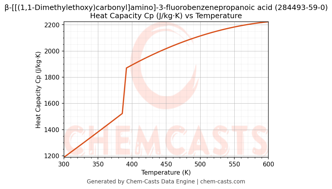 ![Heat Capacity (Cp) vs Temperature chart for β-[[(1,1-Dimethylethoxy)carbonyl]amino]-3-fluorobenzenepropanoic acid (CAS 284493-59-0)](https://chemcasts-prod.s3.ap-south-1.amazonaws.com/chem_plots_pconst/284493-59-0-cp.png)