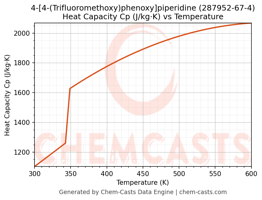![Heat Capacity (Cp) vs Temperature chart for 4-[4-(Trifluoromethoxy)phenoxy]piperidine (CAS 287952-67-4)](https://chemcasts-prod.s3.ap-south-1.amazonaws.com/chem_plots_pconst/287952-67-4-cp.png)