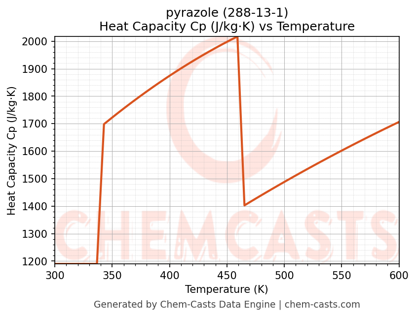 - Specific heat capacity (Cp) indicates the amount of energy required to raise the temperature of pyrazole and is critical for energy balance and heat-exchanger design.