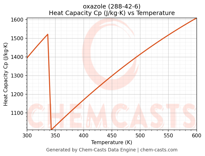 - Specific heat capacity (Cp) indicates the amount of energy required to raise the temperature of oxazole and is critical for energy balance and heat-exchanger design.