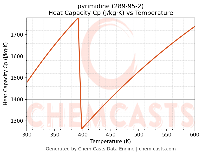 - Specific heat capacity (Cp) indicates the amount of energy required to raise the temperature of pyrimidine and is critical for energy balance and heat-exchanger design.
