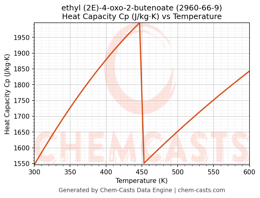 - Specific heat capacity (Cp) indicates the amount of energy required to raise the temperature of ethyl (2E)-4-oxo-2-butenoate and is critical for energy balance and heat-exchanger design.