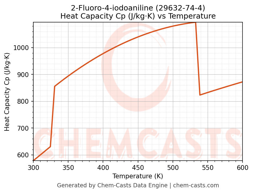 - Specific heat capacity (Cp) indicates the amount of energy required to raise the temperature of 2-Fluoro-4-iodoaniline and is critical for energy balance and heat-exchanger design.