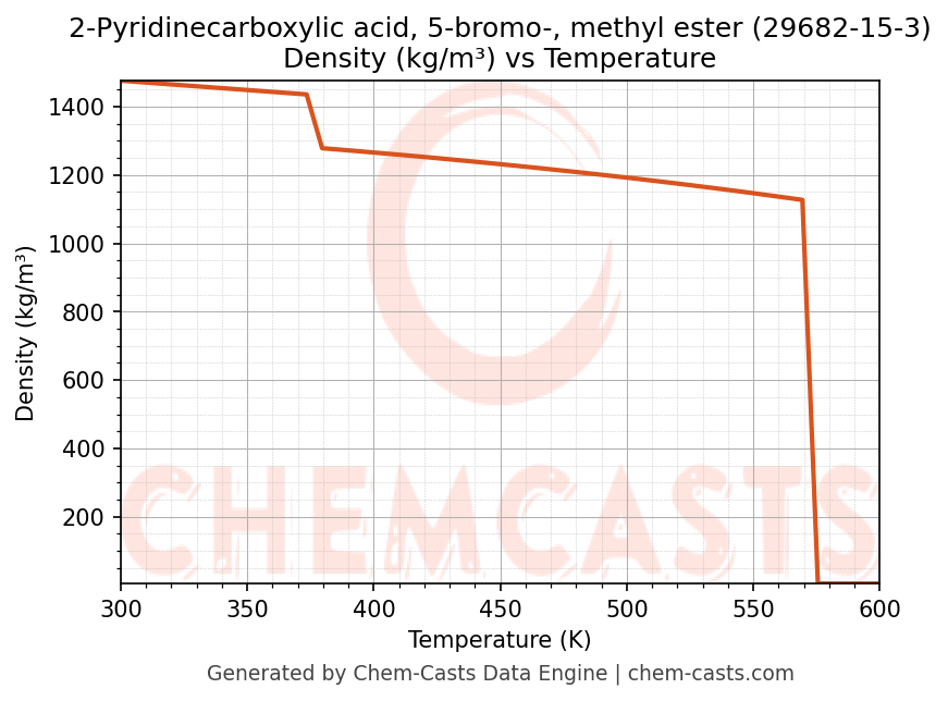 This page presents the temperature-dependent thermodynamic and transport properties of 2-Pyridinecarboxylic acid, 5-bromo-, methyl ester (CAS 29682-15-3) calculated at a constant pressure of 1 atm (101325 Pa) over the temperature range 250-500 K.