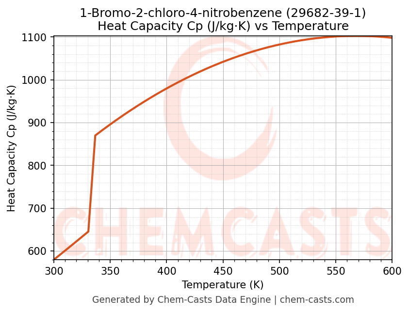 - Specific heat capacity (Cp) indicates the amount of energy required to raise the temperature of 1-Bromo-2-chloro-4-nitrobenzene and is critical for energy balance and heat-exchanger design.