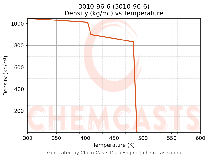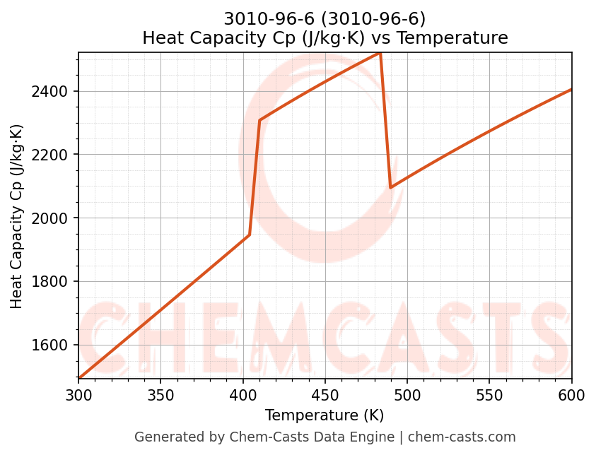 - Specific heat capacity (Cp) indicates the amount of energy required to raise the temperature of 3010-96-6 and is critical for energy balance and heat-exchanger design.