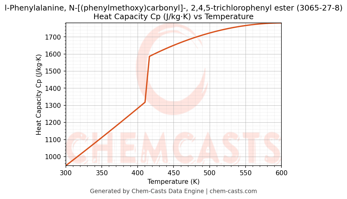 ![Heat Capacity (Cp) vs Temperature chart for l-Phenylalanine, N-[(phenylmethoxy)carbonyl]-, 2,4,5-trichlorophenyl ester (CAS 3065-27-8)](https://chemcasts-prod.s3.ap-south-1.amazonaws.com/chem_plots_pconst/3065-27-8-cp.png)