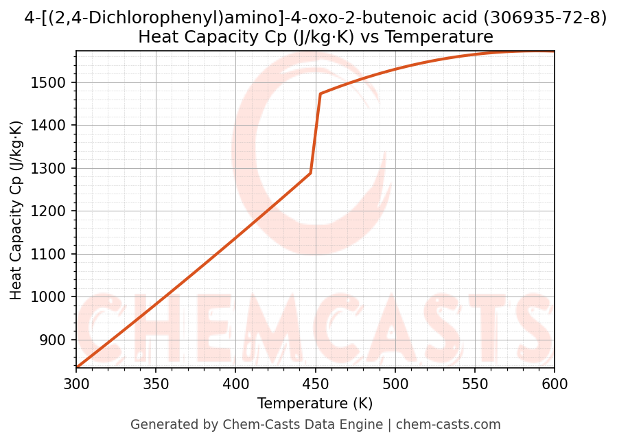 ![Heat Capacity (Cp) vs Temperature chart for 4-[(2,4-Dichlorophenyl)amino]-4-oxo-2-butenoic acid (CAS 306935-72-8)](https://chemcasts-prod.s3.ap-south-1.amazonaws.com/chem_plots_pconst/306935-72-8-cp.png)