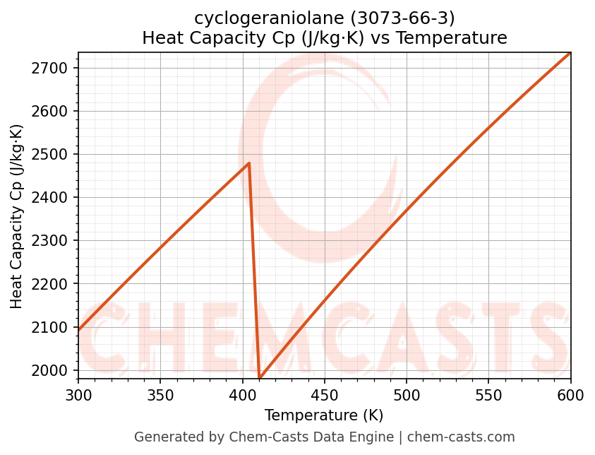 - Specific heat capacity (Cp) indicates the amount of energy required to raise the temperature of cyclogeraniolane and is critical for energy balance and heat-exchanger design.