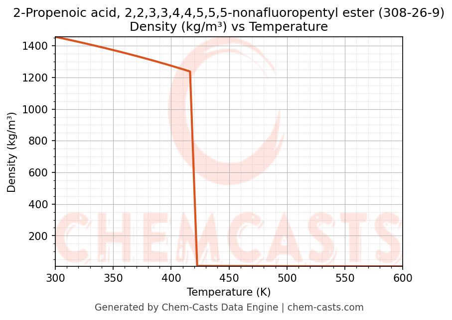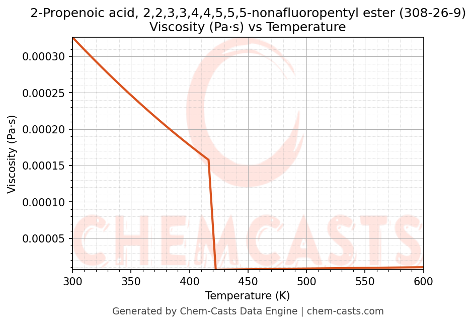 This page presents the temperature-dependent thermodynamic and transport properties of 2-Propenoic acid, 2,2,3,3,4,4,5,5,5-nonafluoropentyl ester (CAS 308-26-9) calculated at a constant pressure of 1 atm (101325 Pa) over the temperature range 250-500 K.