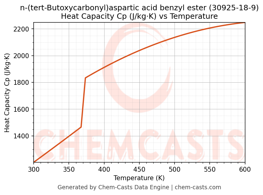 - Specific heat capacity (Cp) indicates the amount of energy required to raise the temperature of n-(tert-Butoxycarbonyl)aspartic acid benzyl ester and is critical for energy balance and heat-exchanger design.