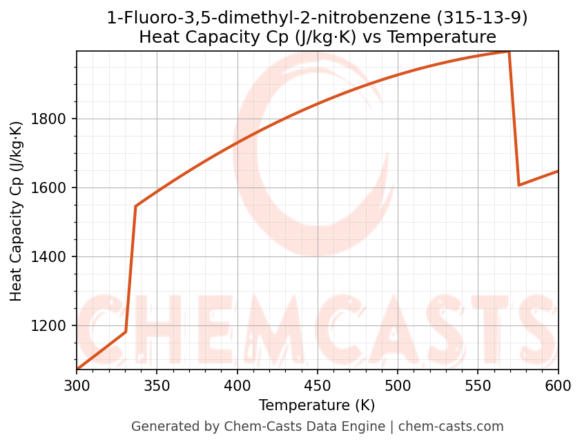 - Specific heat capacity (Cp) indicates the amount of energy required to raise the temperature of 1-Fluoro-3,5-dimethyl-2-nitrobenzene and is critical for energy balance and heat-exchanger design.