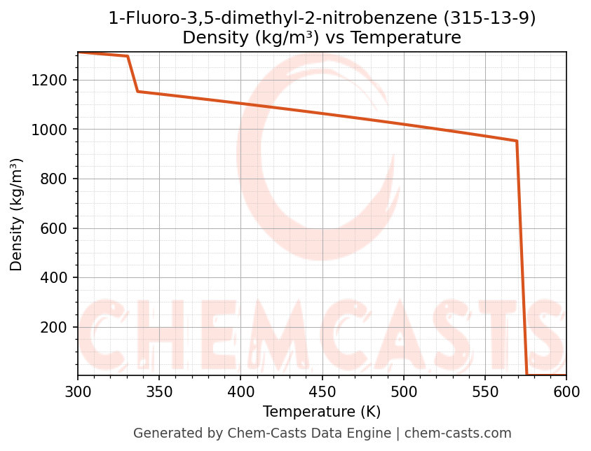 This page presents the temperature-dependent thermodynamic and transport properties of 1-Fluoro-3,5-dimethyl-2-nitrobenzene (CAS 315-13-9) calculated at a constant pressure of 1 atm (101325 Pa) over the temperature range 250-500 K.