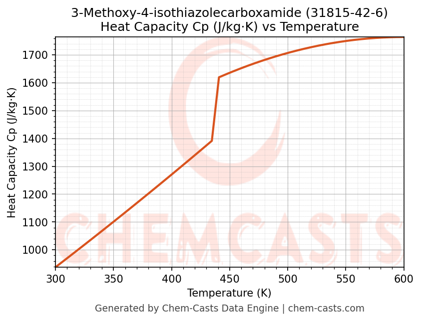 - Specific heat capacity (Cp) indicates the amount of energy required to raise the temperature of 3-Methoxy-4-isothiazolecarboxamide and is critical for energy balance and heat-exchanger design.
