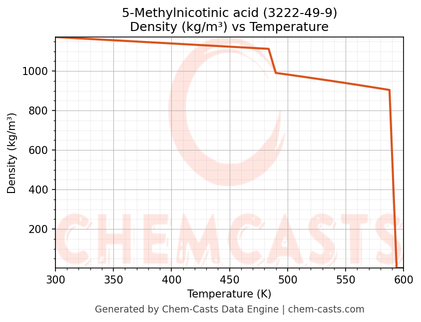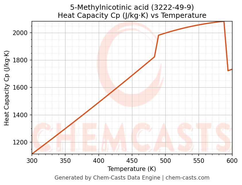 - Specific heat capacity (Cp) indicates the amount of energy required to raise the temperature of 5-Methylnicotinic acid and is critical for energy balance and heat-exchanger design.