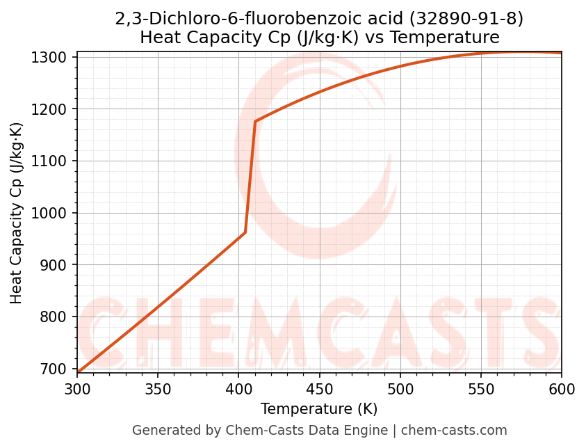 - Specific heat capacity (Cp) indicates the amount of energy required to raise the temperature of 2,3-Dichloro-6-fluorobenzoic acid and is critical for energy balance and heat-exchanger design.