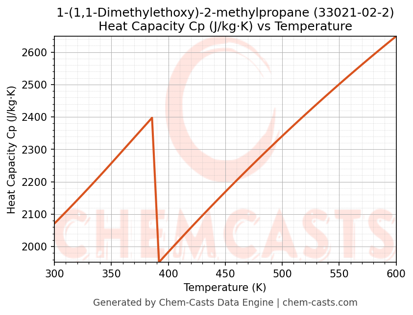 - Specific heat capacity (Cp) indicates the amount of energy required to raise the temperature of 1-(1,1-Dimethylethoxy)-2-methylpropane and is critical for energy balance and heat-exchanger design.
