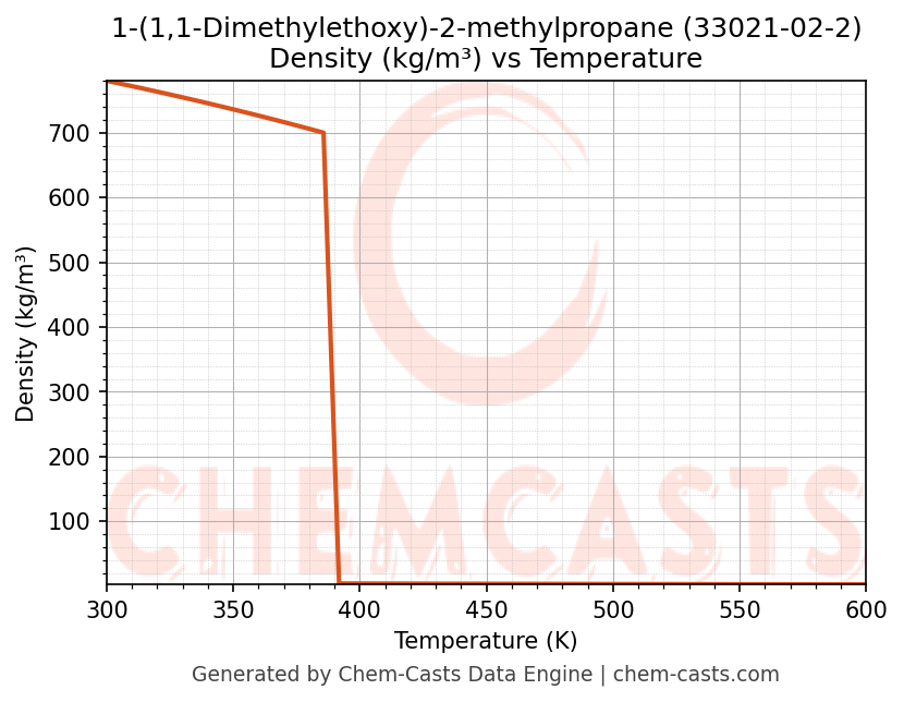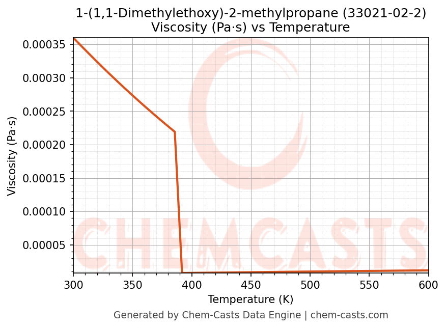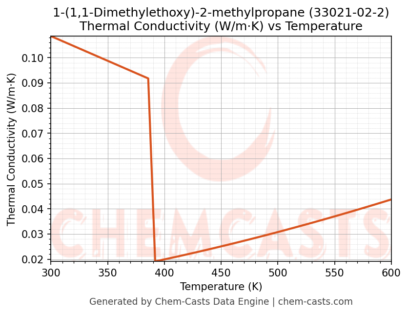 This page presents the temperature-dependent thermodynamic and transport properties of 1-(1,1-Dimethylethoxy)-2-methylpropane (CAS 33021-02-2) calculated at a constant pressure of 1 atm (101325 Pa) over the temperature range 250-500 K.