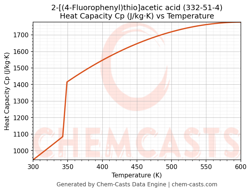 ![Heat Capacity (Cp) vs Temperature chart for 2-[(4-Fluorophenyl)thio]acetic acid (CAS 332-51-4)](https://chemcasts-prod.s3.ap-south-1.amazonaws.com/chem_plots_pconst/332-51-4-cp.png)