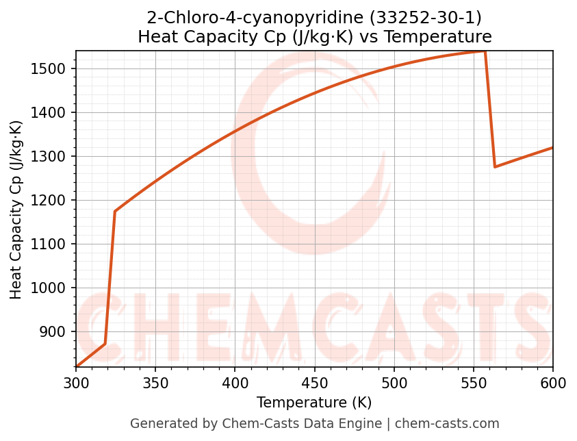 - Specific heat capacity (Cp) indicates the amount of energy required to raise the temperature of 2-Chloro-4-cyanopyridine and is critical for energy balance and heat-exchanger design.