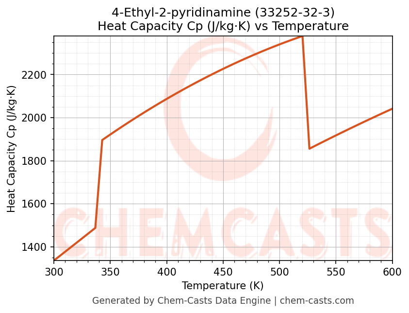 - Specific heat capacity (Cp) indicates the amount of energy required to raise the temperature of 4-Ethyl-2-pyridinamine and is critical for energy balance and heat-exchanger design.