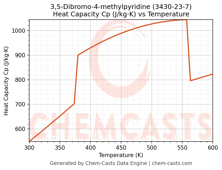 - Specific heat capacity (Cp) indicates the amount of energy required to raise the temperature of 3,5-Dibromo-4-methylpyridine and is critical for energy balance and heat-exchanger design.