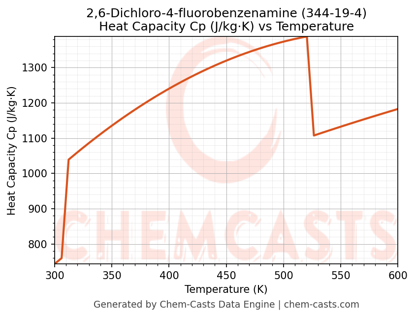 - Specific heat capacity (Cp) indicates the amount of energy required to raise the temperature of 2,6-Dichloro-4-fluorobenzenamine and is critical for energy balance and heat-exchanger design.