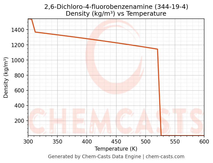This page presents the temperature-dependent thermodynamic and transport properties of 2,6-Dichloro-4-fluorobenzenamine (CAS 344-19-4) calculated at a constant pressure of 1 atm (101325 Pa) over the temperature range 250-500 K.