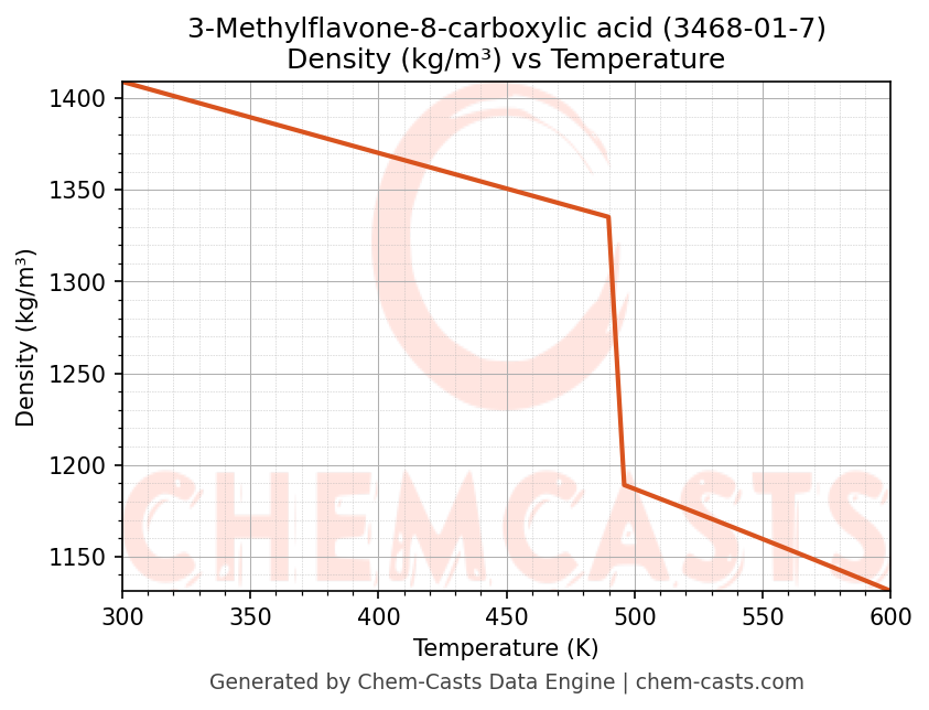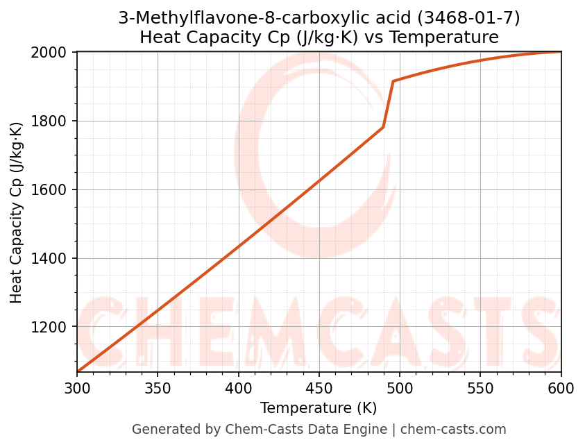 - Specific heat capacity (Cp) indicates the amount of energy required to raise the temperature of 3-Methylflavone-8-carboxylic acid and is critical for energy balance and heat-exchanger design.