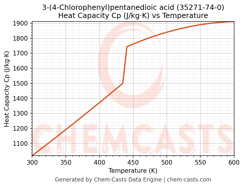 - Specific heat capacity (Cp) indicates the amount of energy required to raise the temperature of 3-(4-Chlorophenyl)pentanedioic acid and is critical for energy balance and heat-exchanger design.