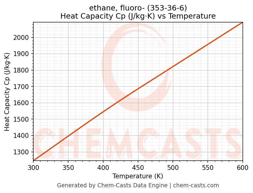 - Specific heat capacity (Cp) indicates the amount of energy required to raise the temperature of ethane, fluoro- and is critical for energy balance and heat-exchanger design.