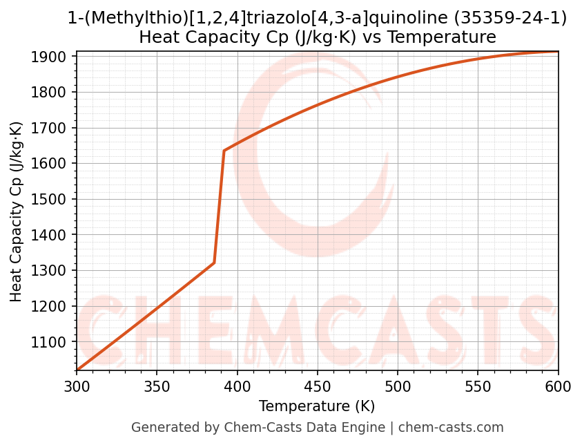 ![Heat Capacity (Cp) vs Temperature chart for 1-(Methylthio)[1,2,4]triazolo[4,3-a]quinoline (CAS 35359-24-1)](https://chemcasts-prod.s3.ap-south-1.amazonaws.com/chem_plots_pconst/35359-24-1-cp.png)