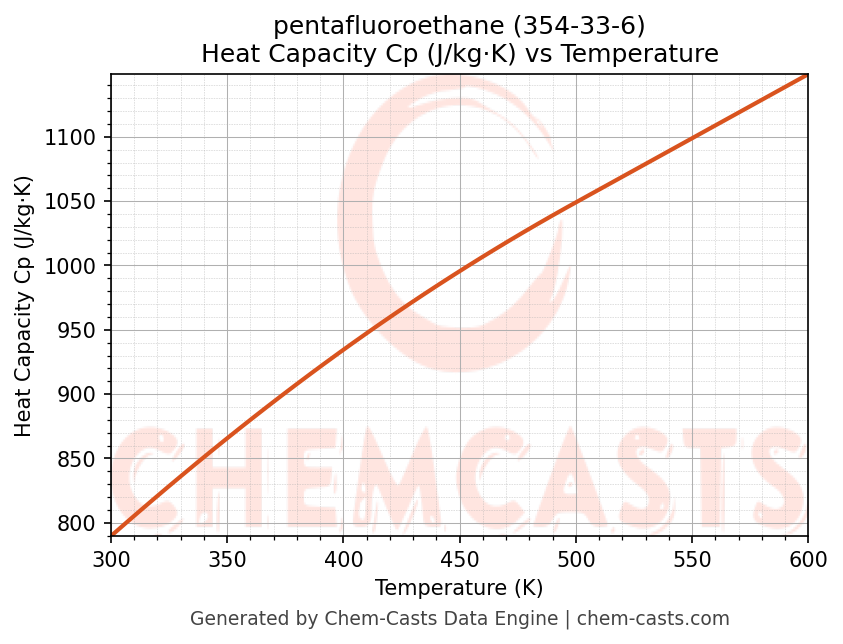 - Specific heat capacity (Cp) indicates the amount of energy required to raise the temperature of pentafluoroethane and is critical for energy balance and heat-exchanger design.