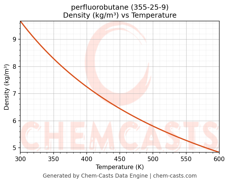 - Specific heat capacity (Cp) indicates the amount of energy required to raise the temperature of perfluorobutane and is critical for energy balance and heat-exchanger design.