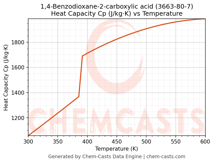 - Specific heat capacity (Cp) indicates the amount of energy required to raise the temperature of 1,4-Benzodioxane-2-carboxylic acid and is critical for energy balance and heat-exchanger design.