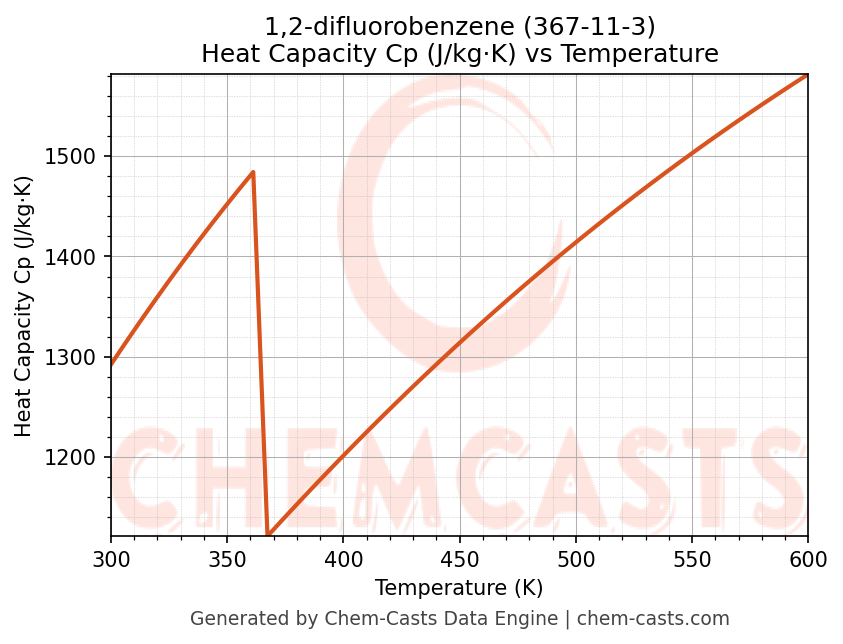 - Specific heat capacity (Cp) indicates the amount of energy required to raise the temperature of 1,2-difluorobenzene and is critical for energy balance and heat-exchanger design.