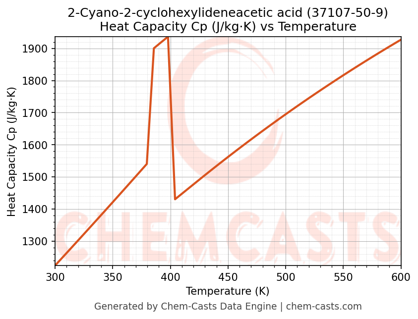 - Specific heat capacity (Cp) indicates the amount of energy required to raise the temperature of 2-Cyano-2-cyclohexylideneacetic acid and is critical for energy balance and heat-exchanger design.