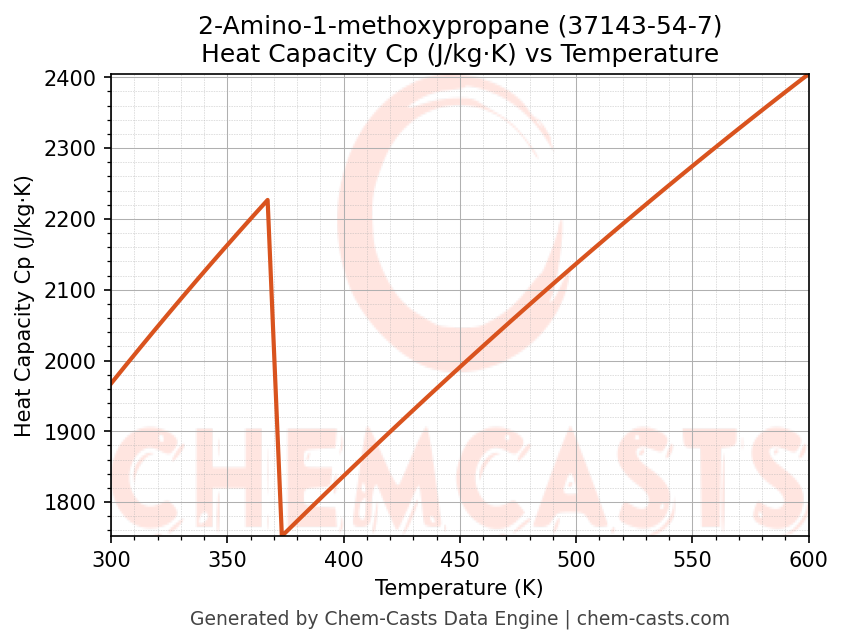 - Specific heat capacity (Cp) indicates the amount of energy required to raise the temperature of 2-Amino-1-methoxypropane and is critical for energy balance and heat-exchanger design.