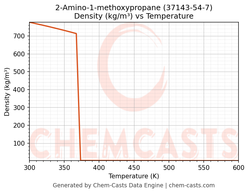 This page presents the temperature-dependent thermodynamic and transport properties of 2-Amino-1-methoxypropane (CAS 37143-54-7) calculated at a constant pressure of 1 atm (101325 Pa) over the temperature range 250-500 K.